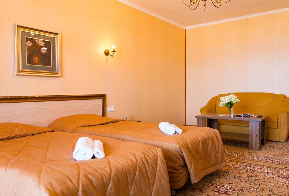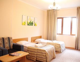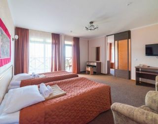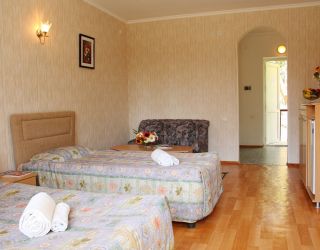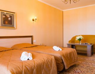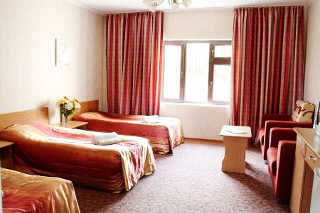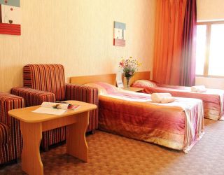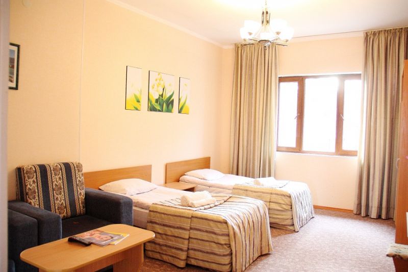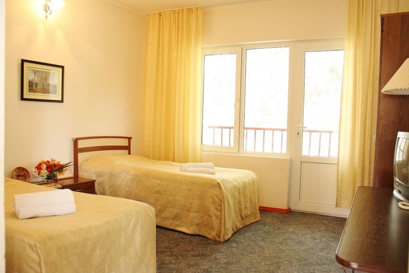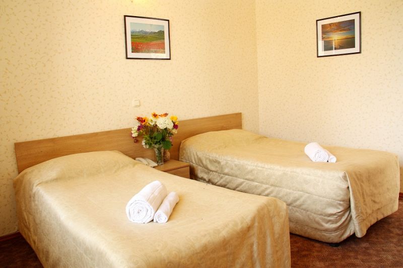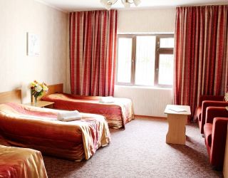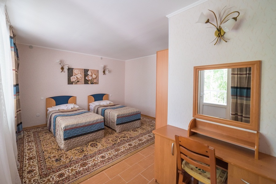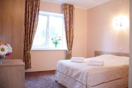 Гости отеля могут выбрать для проживания 2-4-хместные 1-2-хкомнатные комфортабельные номера класса «Полулюкс», расположенные в основном корпусе или в коттеджах.