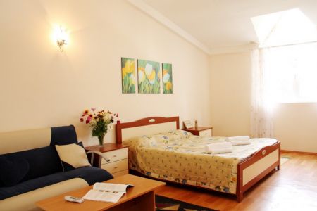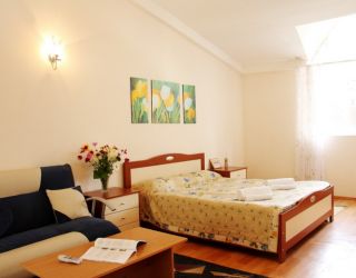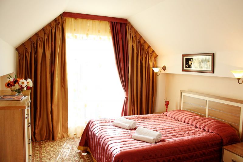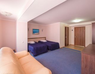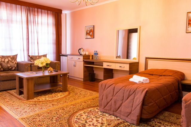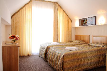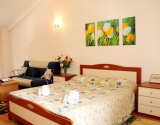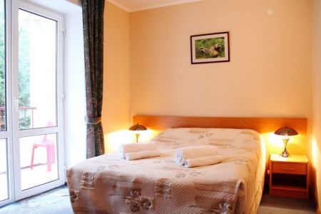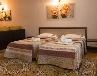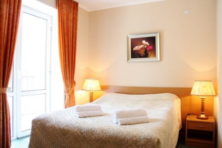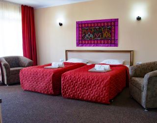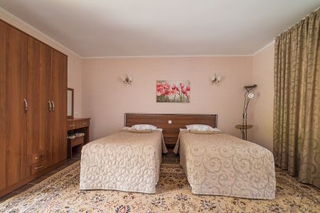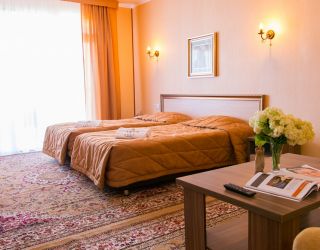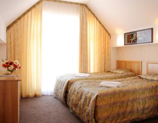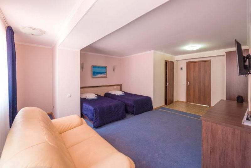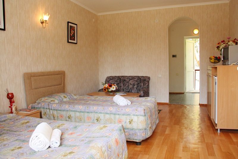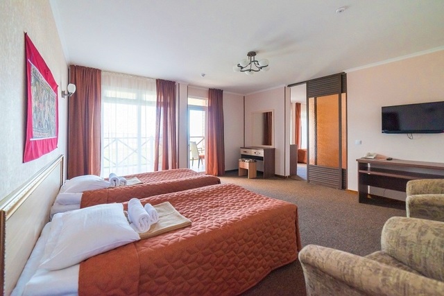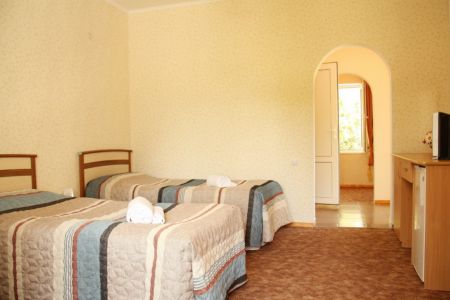 Гости отеля могут выбрать для проживания 2-4-хместные 1-2-хкомнатные комфортабельные номера класса «Полулюкс», расположенные в основном корпусе или в коттеджах.