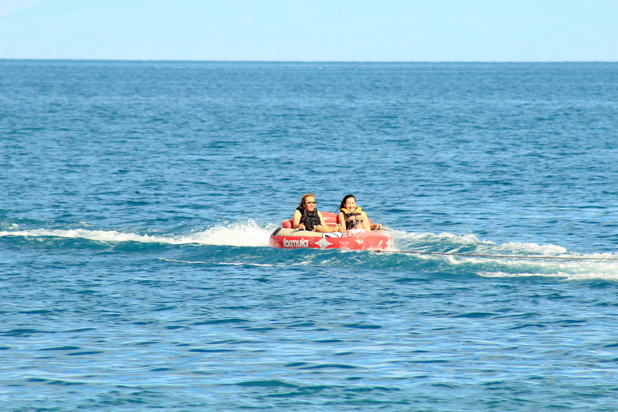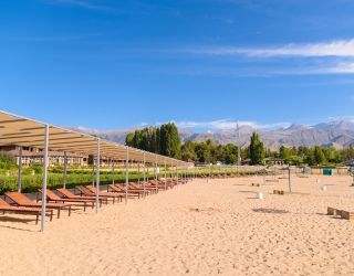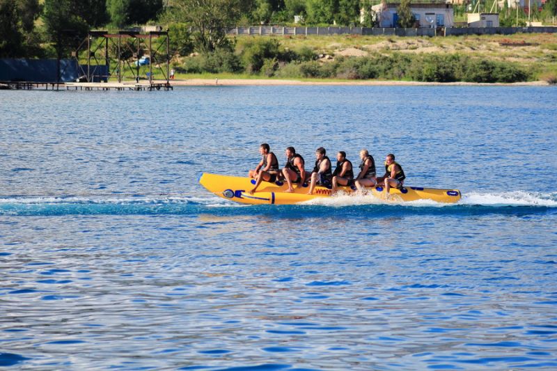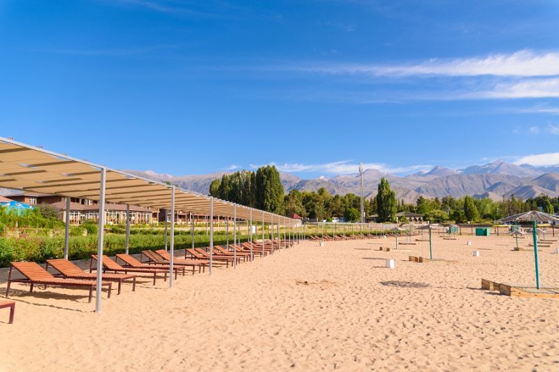В 200 ‒ 300 м от коттеджей и жилого корпуса гостиницы «Акун Иссык-Куль» находится собственный оборудованный пляж, где есть зонты и шезлонги. Там же туристы могут заниматься такими водно-моторными видами спорта, как катание на катамаранах, яхтах, скутерах и бананах, а также совершать прыжки с парашютом.