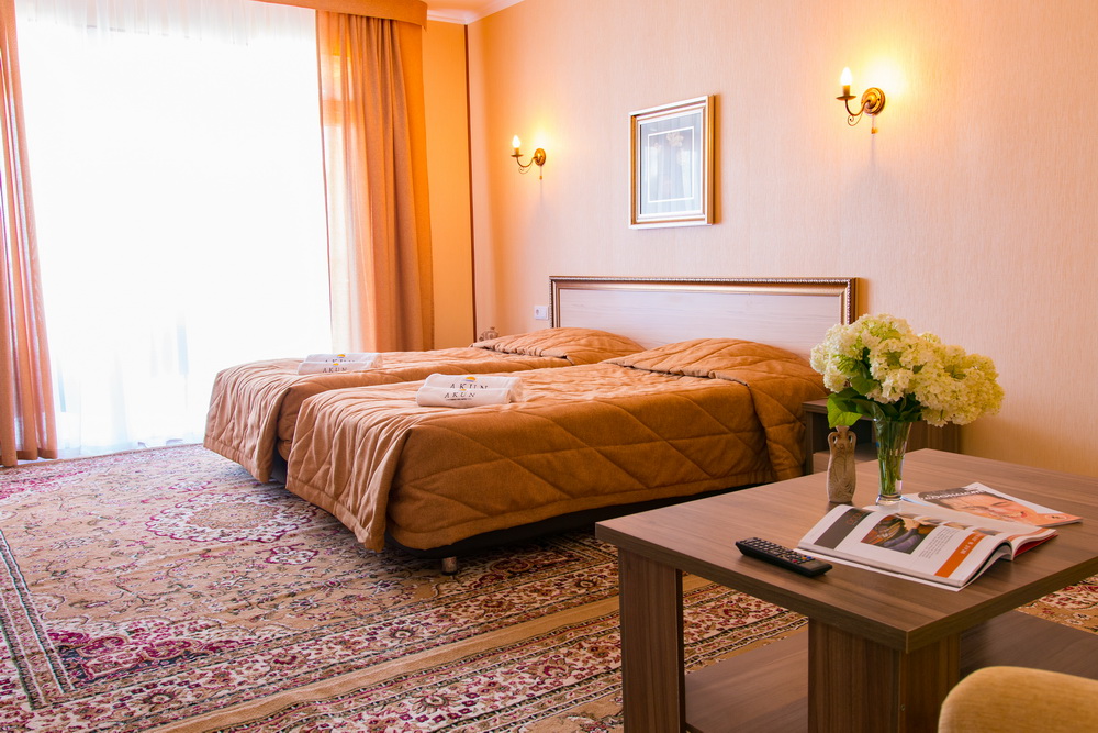 Все номера «Акун Иссык-Куль» обставлены необходимой мебелью и в них установлены телефоны, холодильники и электрочайники, производится ежедневная уборка, а раз в три дня смена белья и полотенец. Кроме того, в «Полулюксах» есть также телевизоры, а апартаменты в некоторых коттеджах имеют кухни, просторные террасы и отдельные санузлы с душевой кабиной.