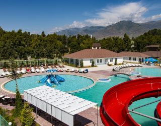 Особенно в Доме отдыха «Акун Иссык-Куль» рады семьям с детьми любого возраста, для которых здесь есть детский бассейн, мини-клуб детсадовского типа и игровая площадка. Кроме того, можно взять напрокат детскую коляску или велосипед.